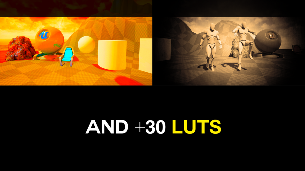 19 fully customizable Post Process Materials and more than 30 Look Up Tables for your project!
